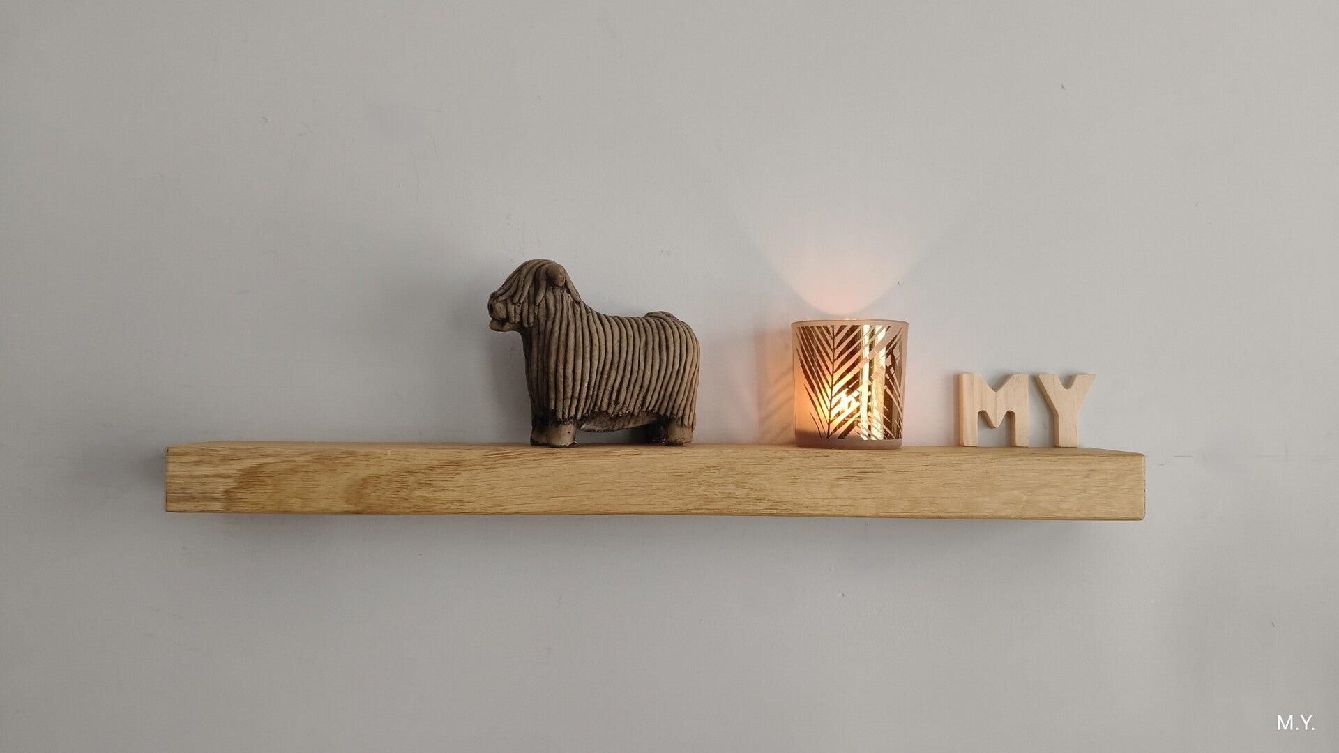 Deze wandplank is uit hetzelfde hout en met gelijke afmetingen als #131 en daardoor heel goed samen als set te combineren.