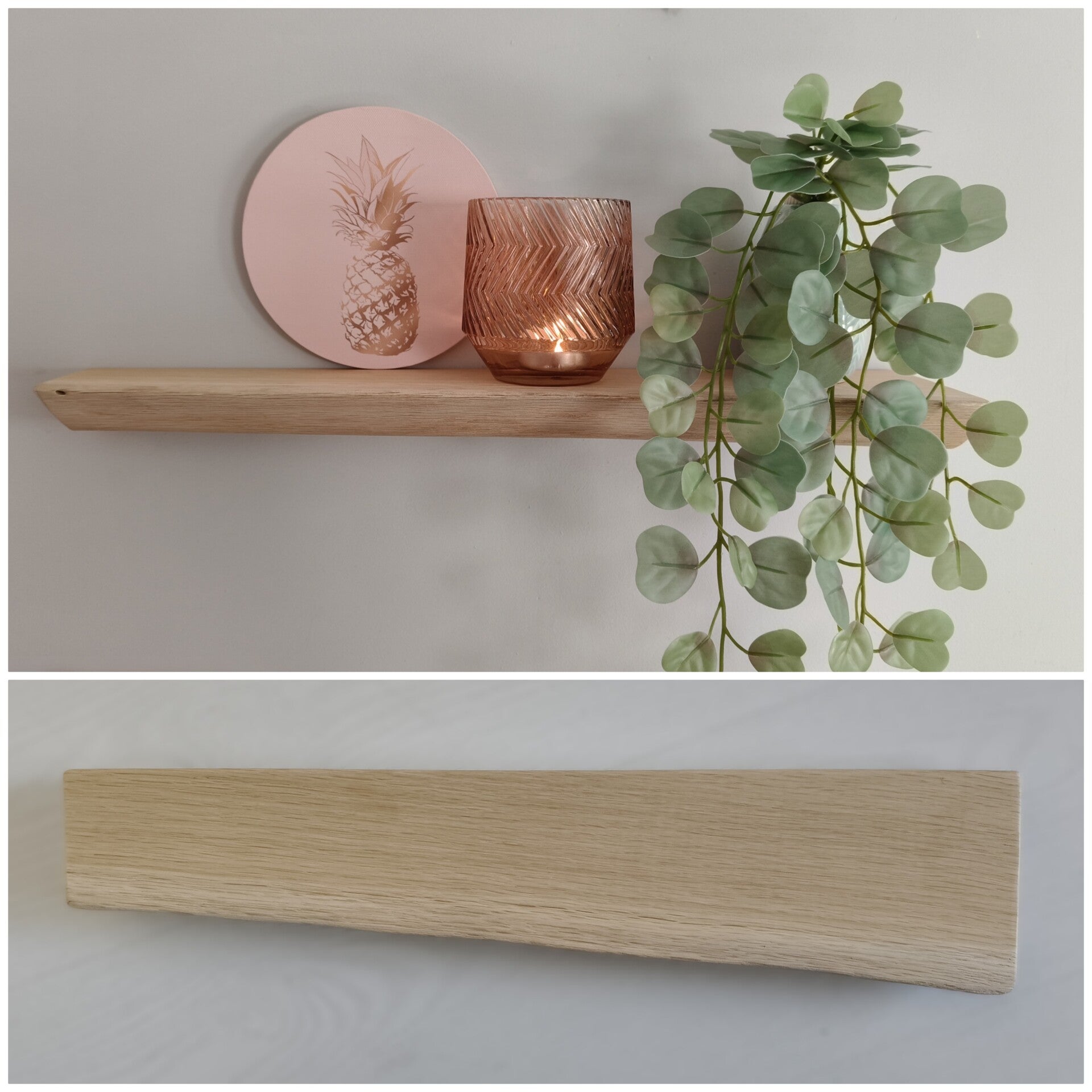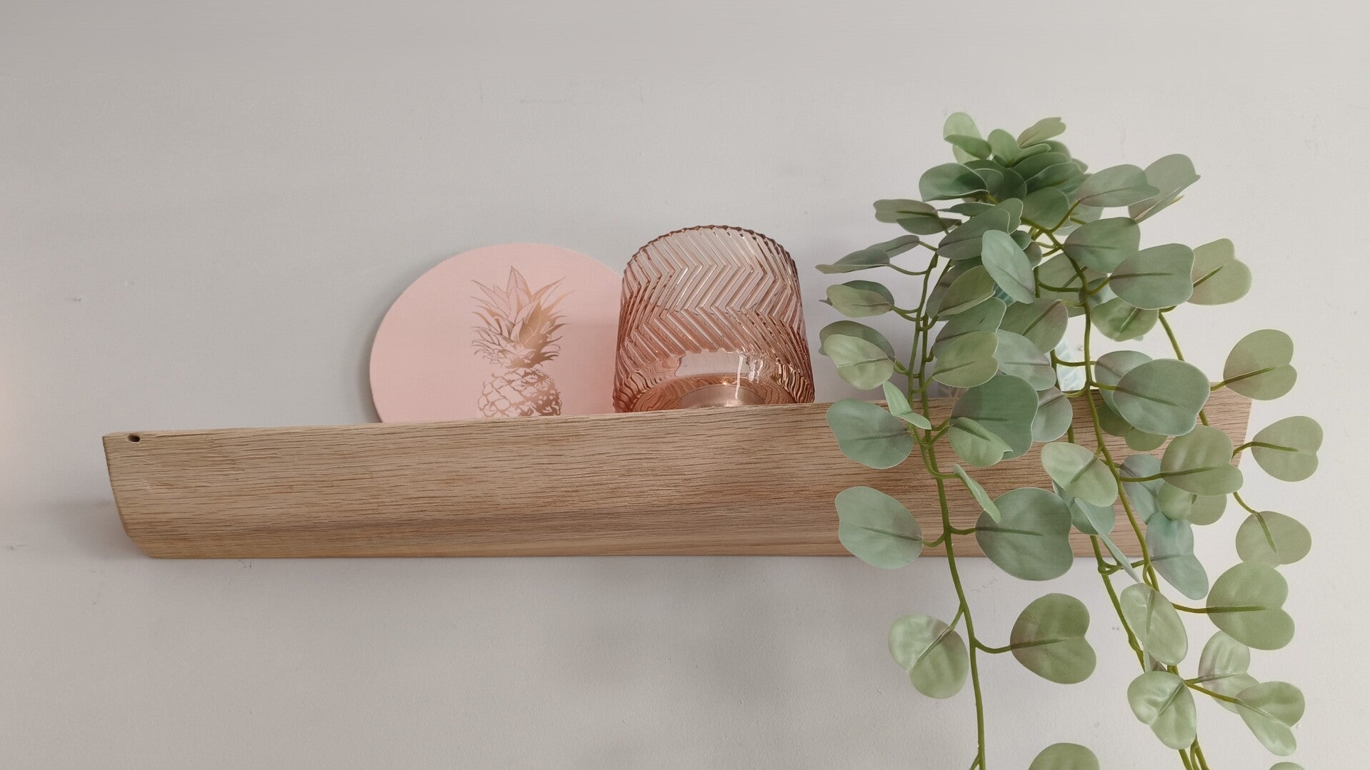 De plank is aan de achterzijde voorzien van sleutelgaten, waardoor je deze eenvoudig zwevend kunt ophangen met schroeven. Geschikt voor lichte belasting.