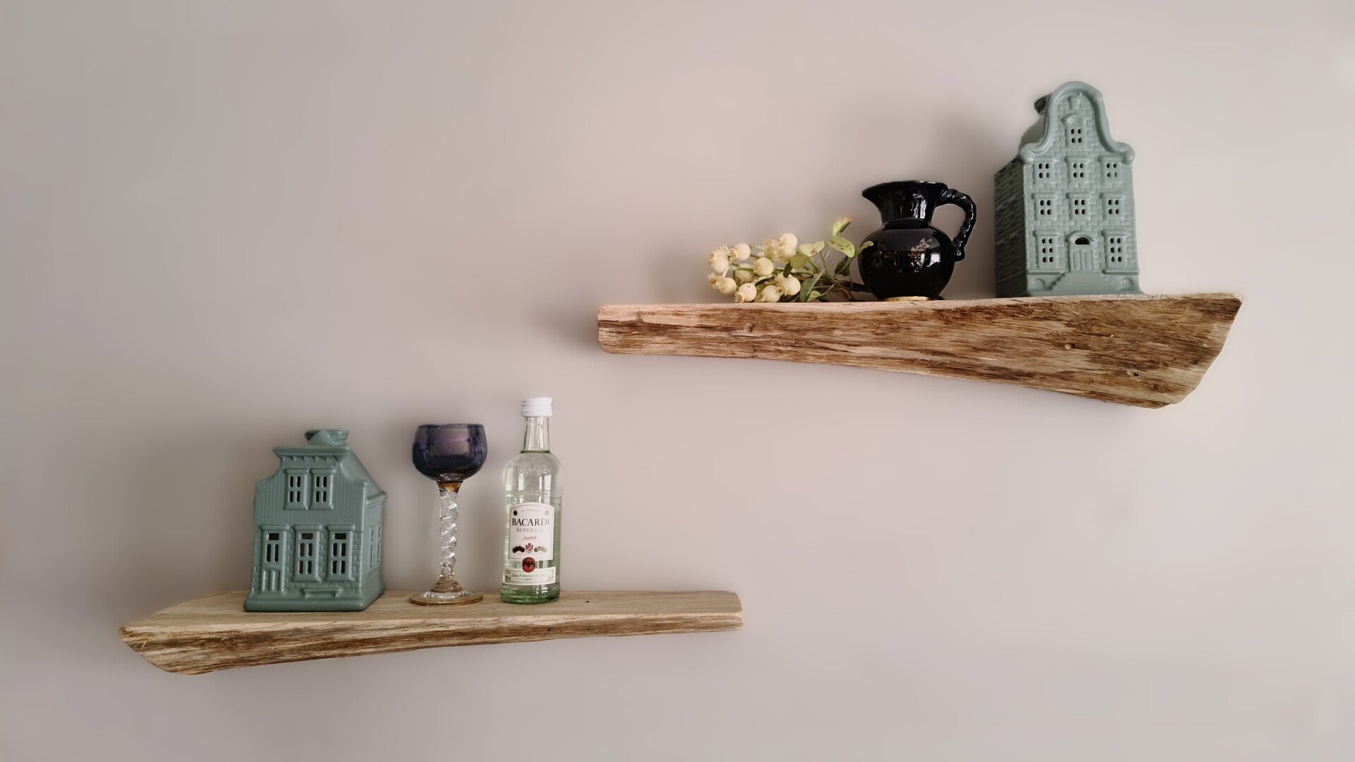 De planken zijn aan de achterzijde voorzien van sleutelgaten, waardoor je deze eenvoudig zwevend kunt ophangen met schroeven. Geschikt voor lichte belasting. Zorg ervoor dat je schroeven en pluggen gebruikt die geschikt zijn voor het type muur waarop je de wandplank wilt bevestigen.
