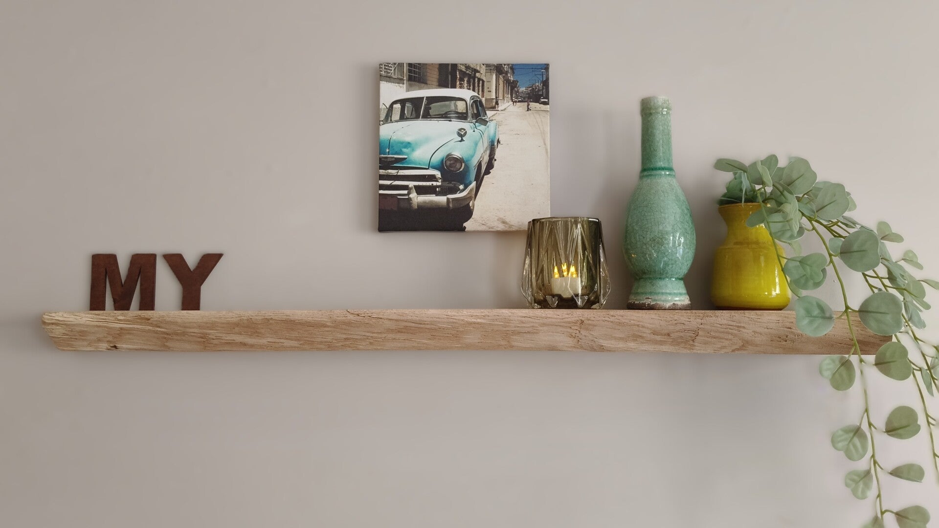 De plank is aan de achterzijde voorzien van sleutelgaten, waardoor je deze eenvoudig zwevend kunt ophangen met schroeven. Geschikt voor lichte belasting.