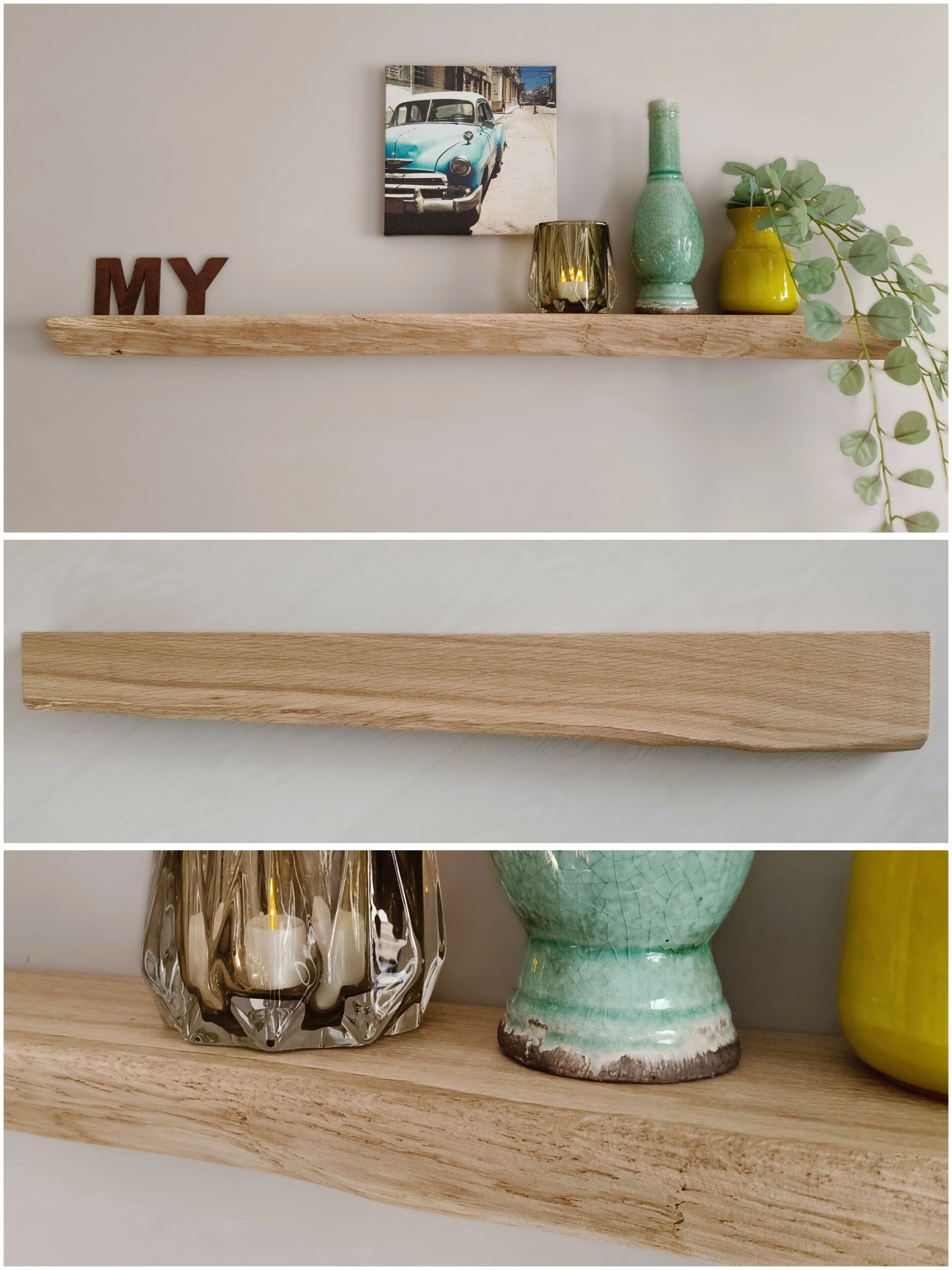 De plank is aan de achterzijde voorzien van sleutelgaten, waardoor je deze eenvoudig zwevend kunt ophangen met schroeven. Geschikt voor lichte belasting/decoratie.