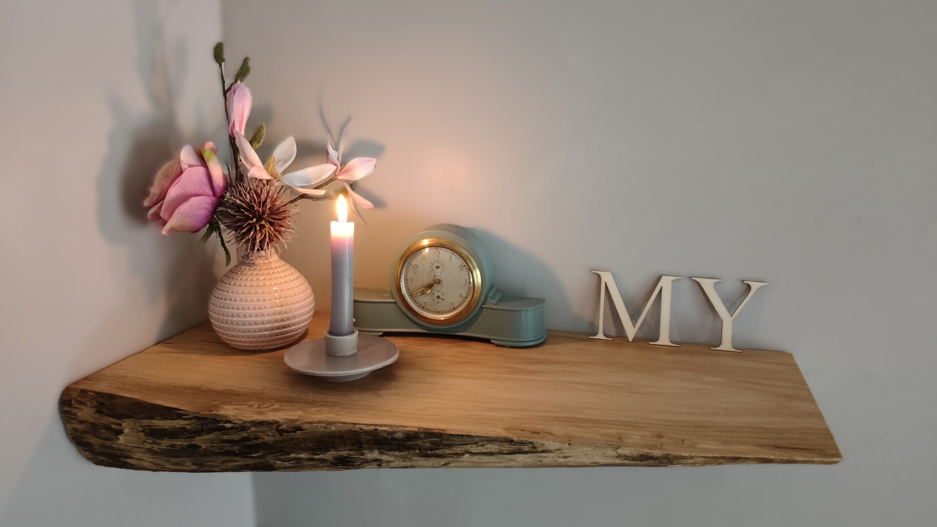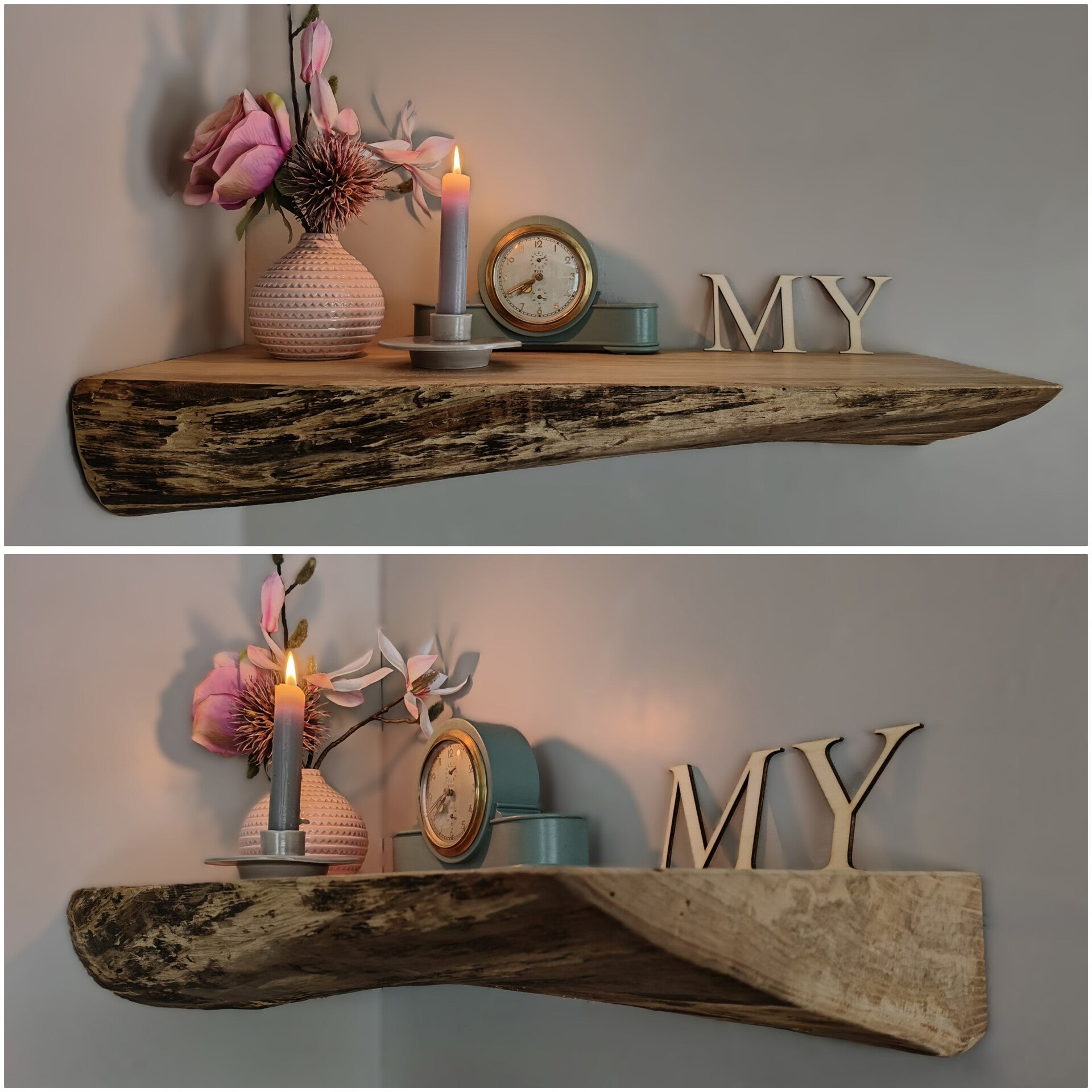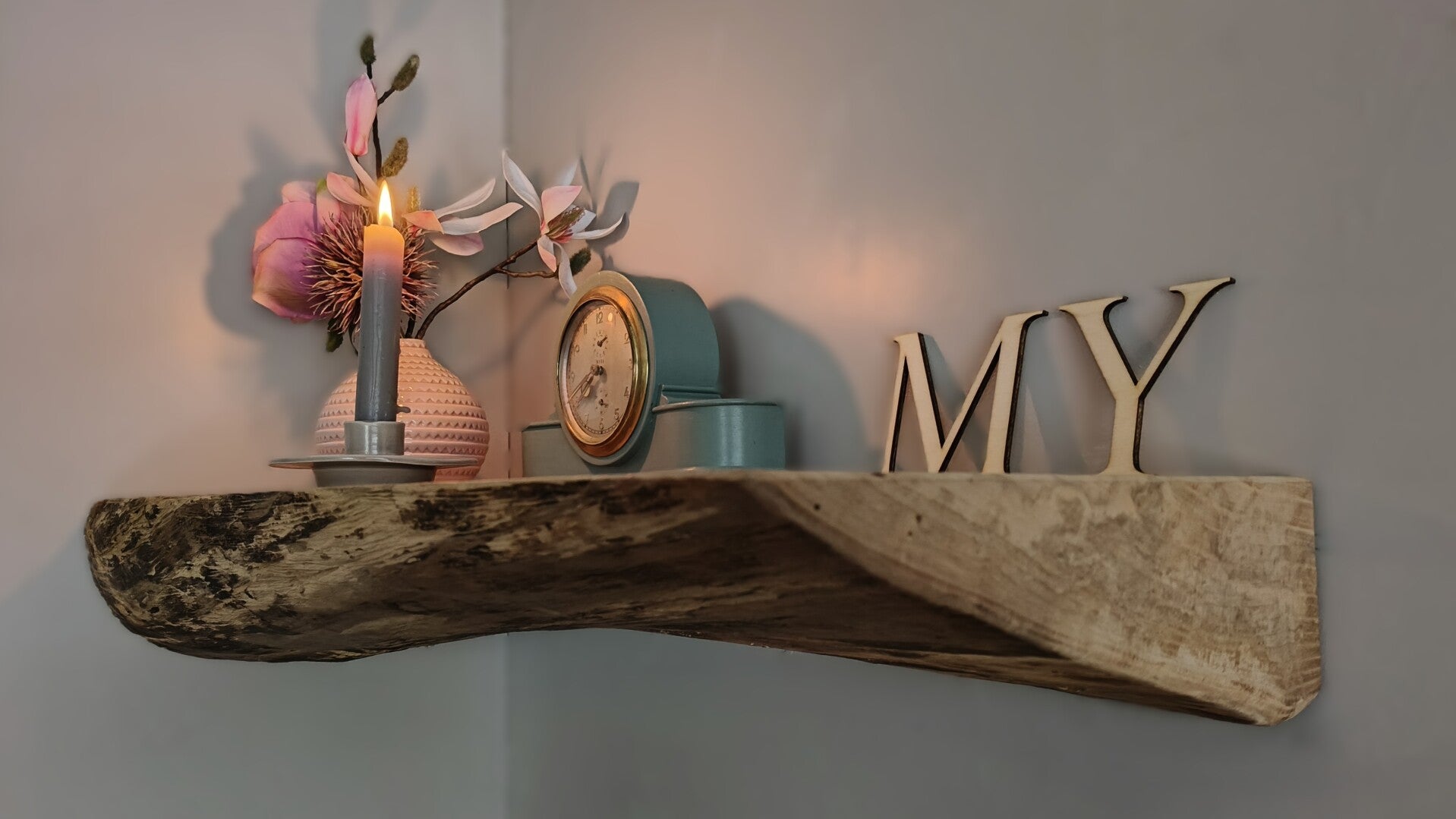 Let op! Dit is een zware boomstam wandplank met diepe afmetingen! Heel mooi voor in een hoek en/of nis en vanwege de ruime diepte (24-30cm) is deze ook zeer geschikt voor boeken/planten en andere zware/grote voorwerpen.