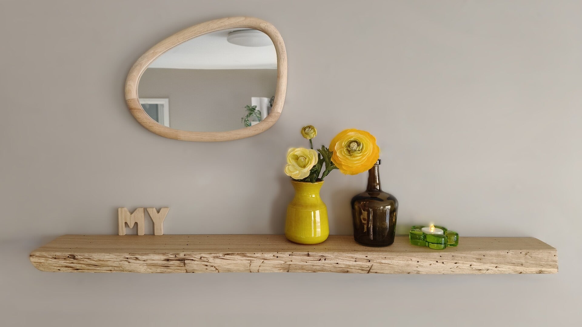 De plank is aan de achterzijde voorzien van sleutelgaten, waardoor je deze eenvoudig zwevend kunt ophangen met schroeven. Geschikt voor lichte belasting.