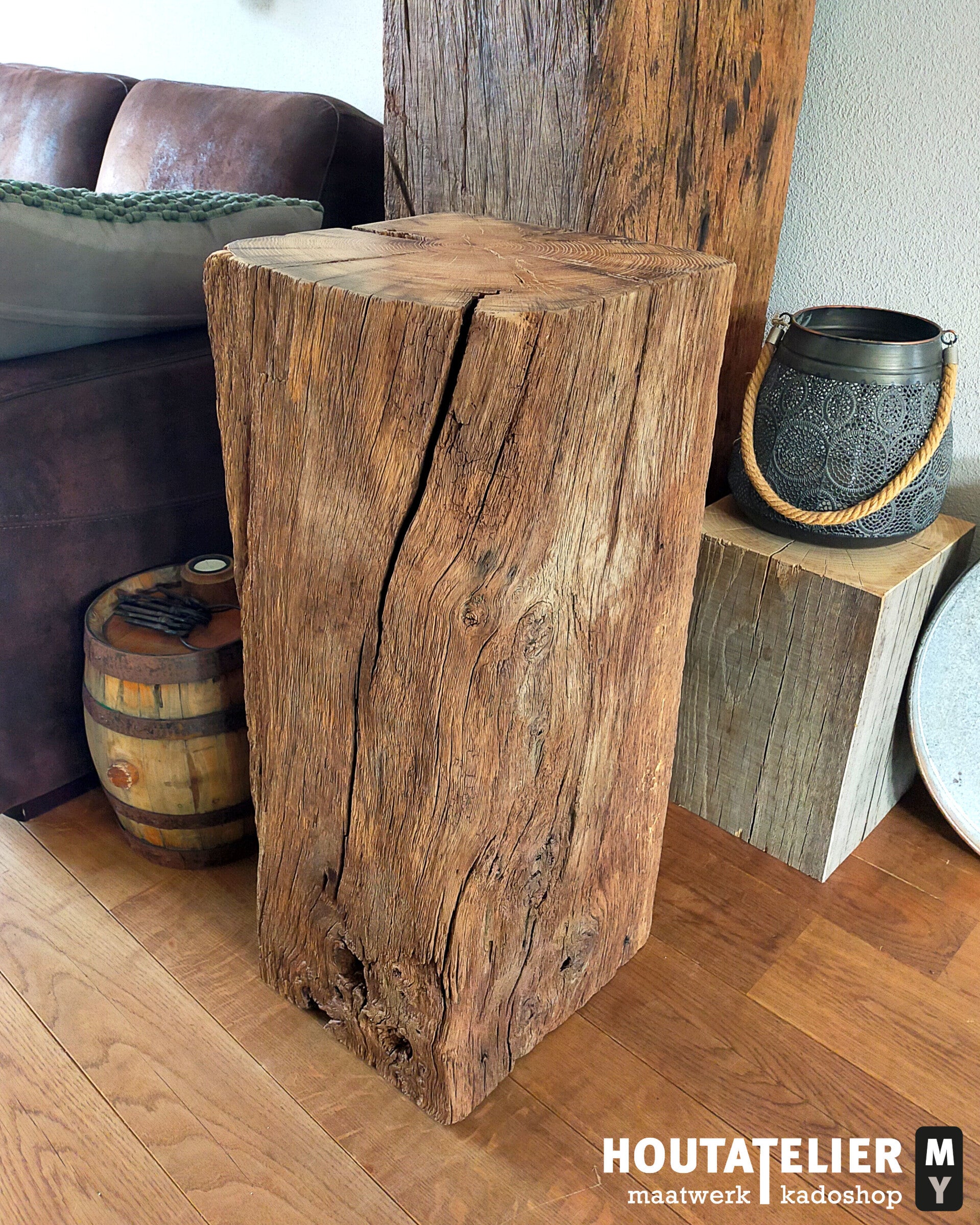 Voorbeelden van allerlei blokken en zuilen die door de jaren heen in ons houtatelier zijn gemaakt. Van rond tot vierkant, strak tot robuust en van heel groot tot klein. Ook meerpalen zijn in diverse afmetingen mogelijk.