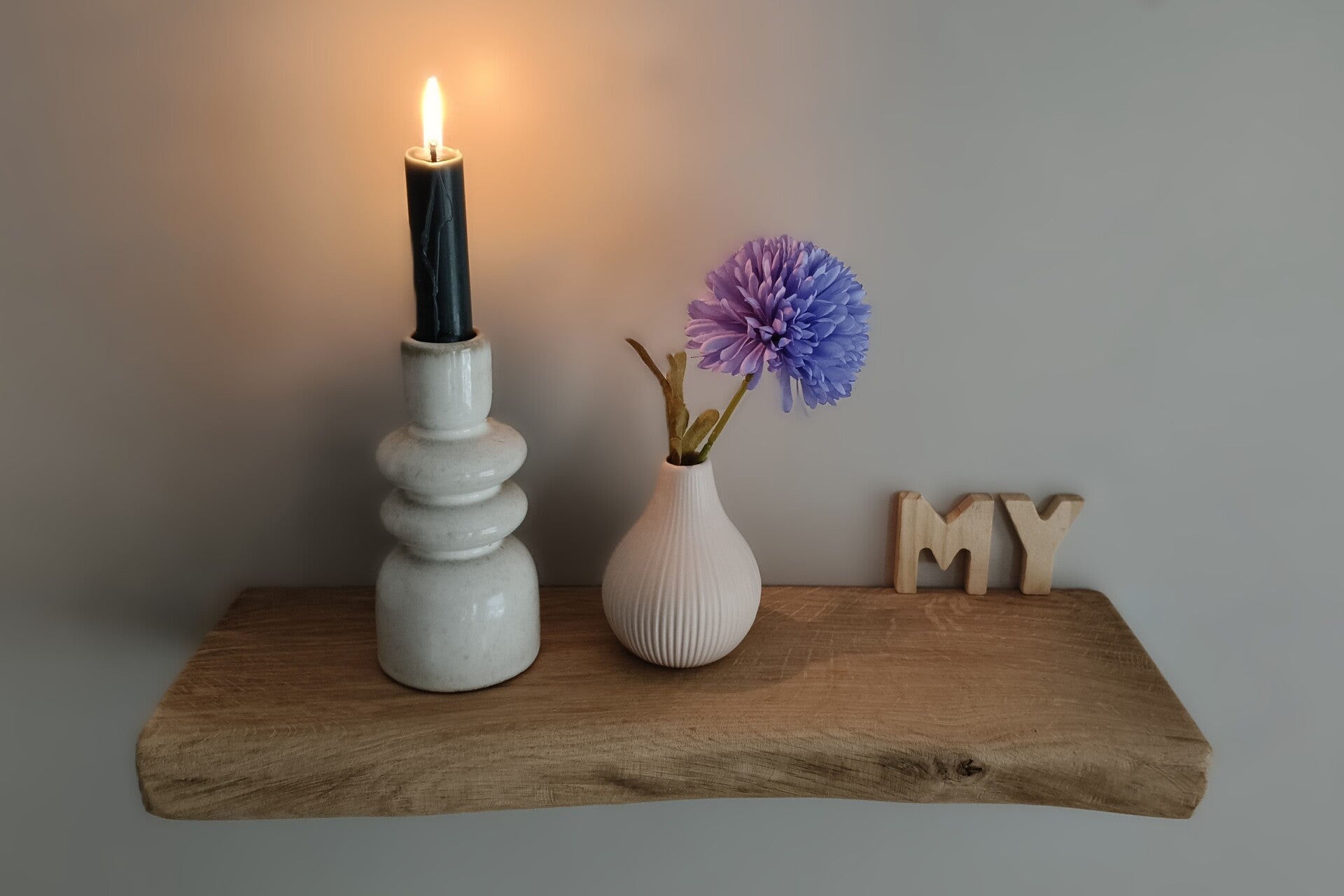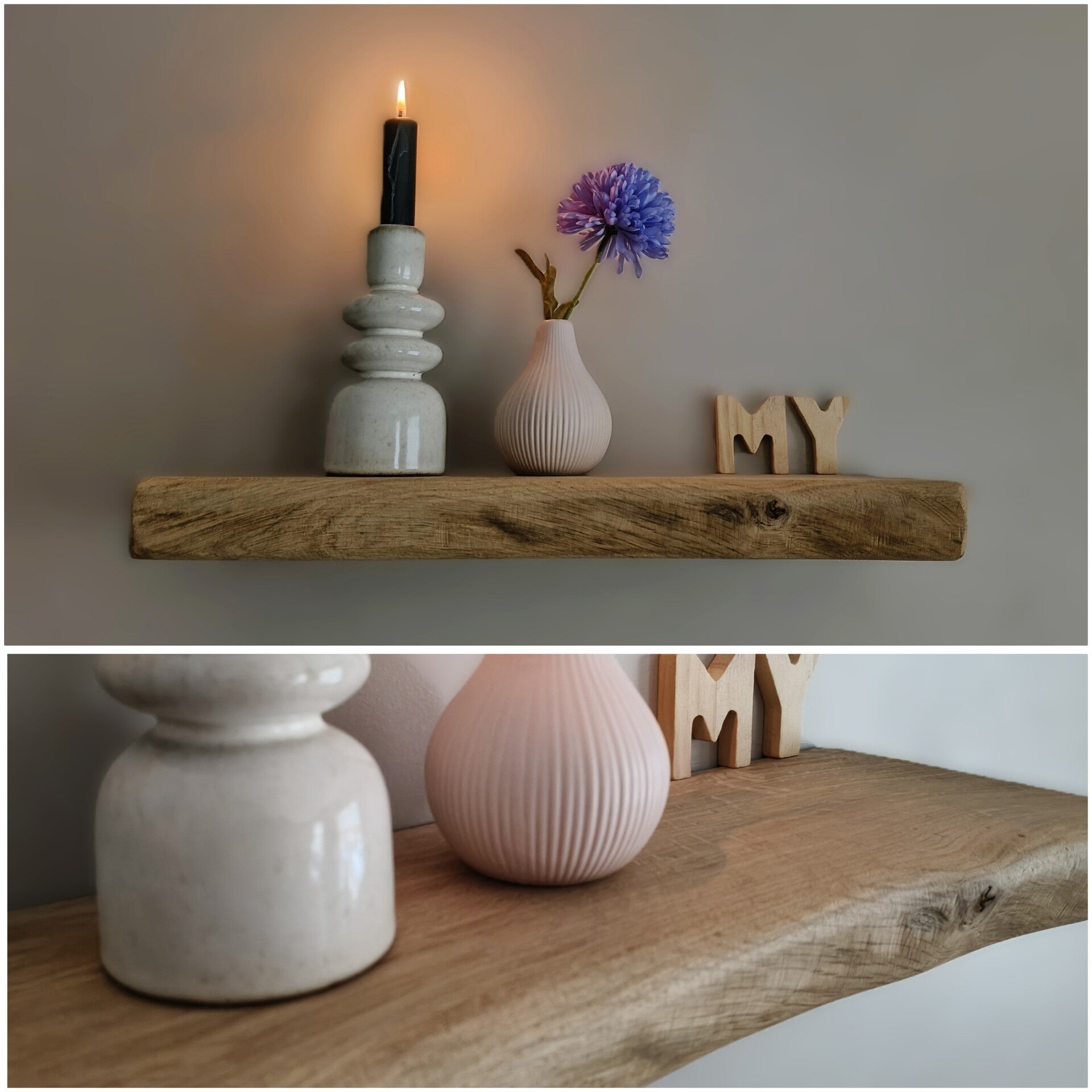 De plank is aan de achterzijde voorzien van sleutelgaten, waardoor je deze eenvoudig zwevend kunt ophangen met schroeven. Geschikt voor lichte belasting/decoratie.