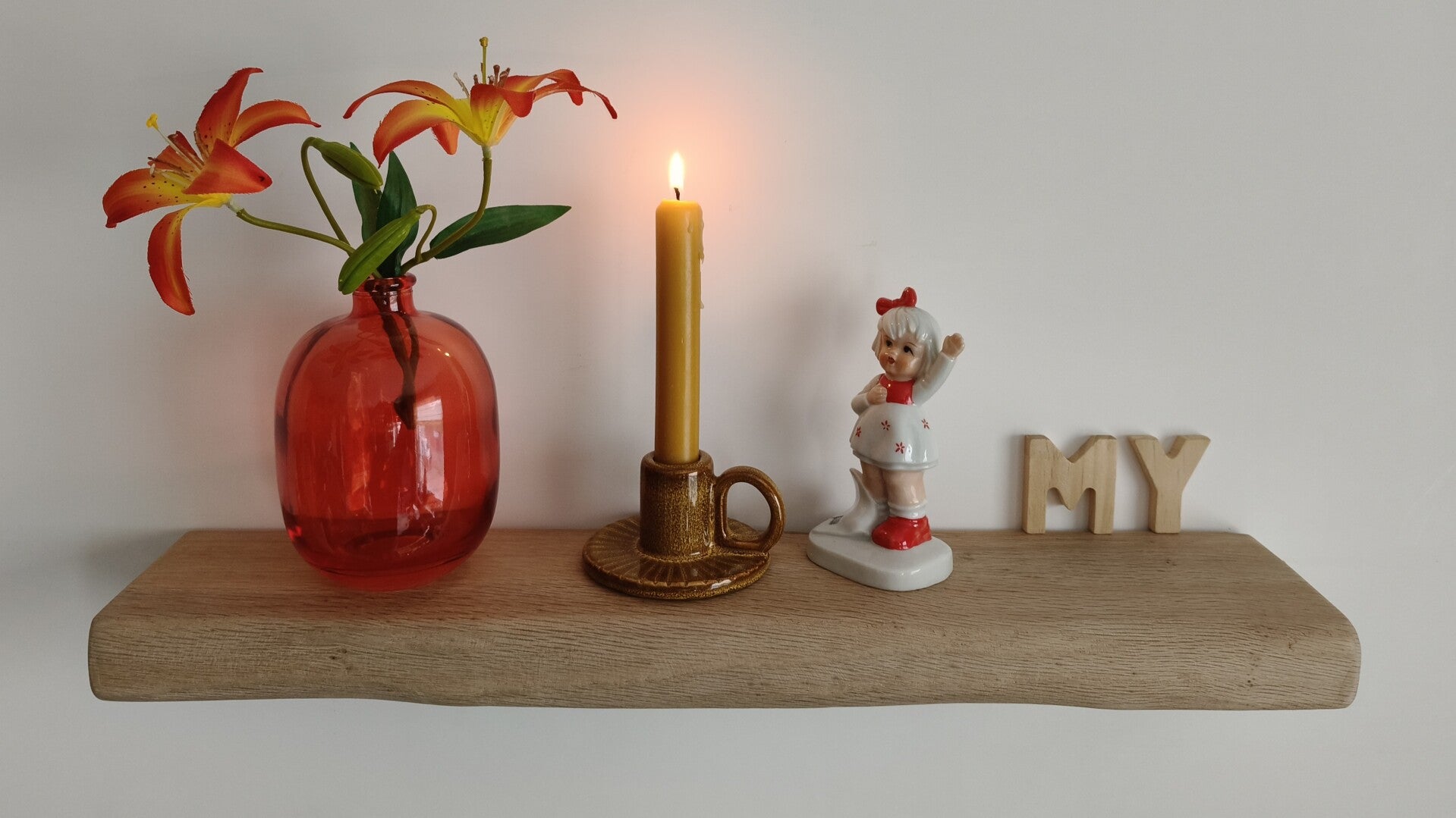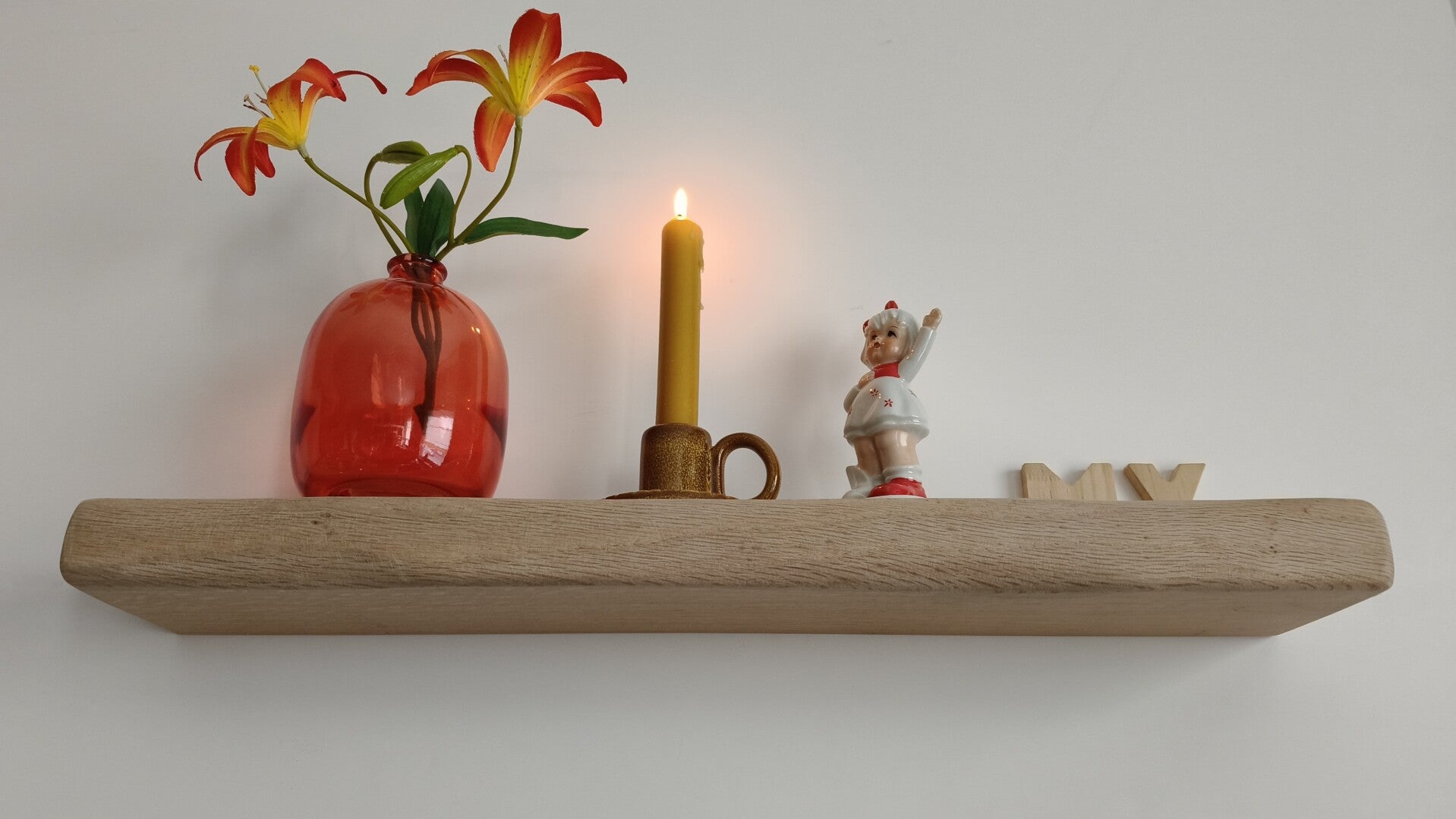 De plank is aan de achterzijde voorzien van dubbele sleutelgaten, waardoor je deze eenvoudig met de gewenste kant boven/onder zwevend kunt ophangen met schroeven. Geschikt voor lichte belasting/decoratie.
