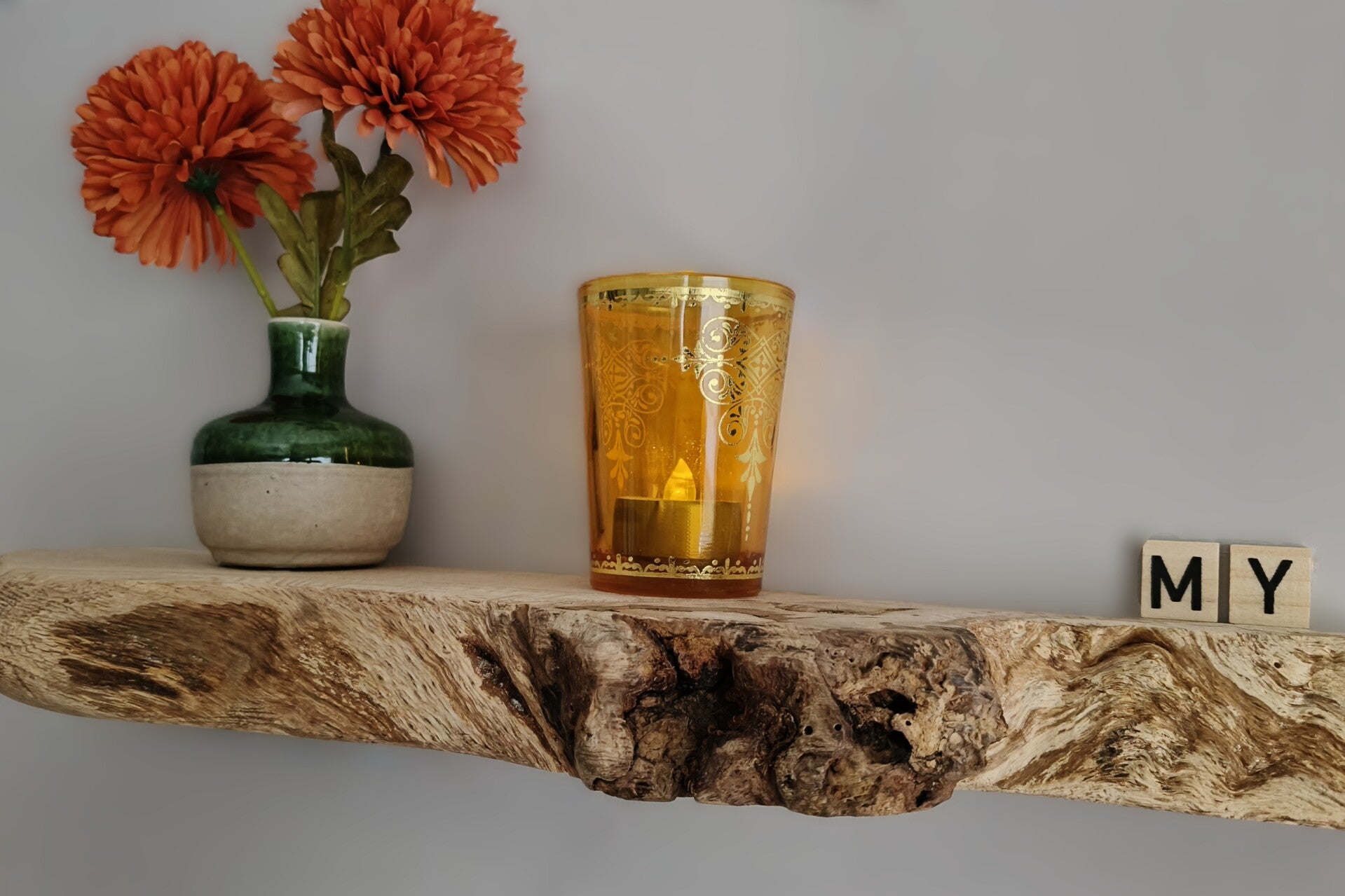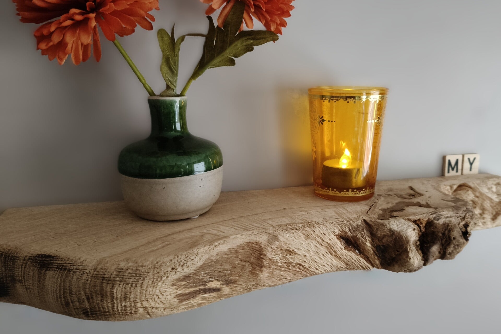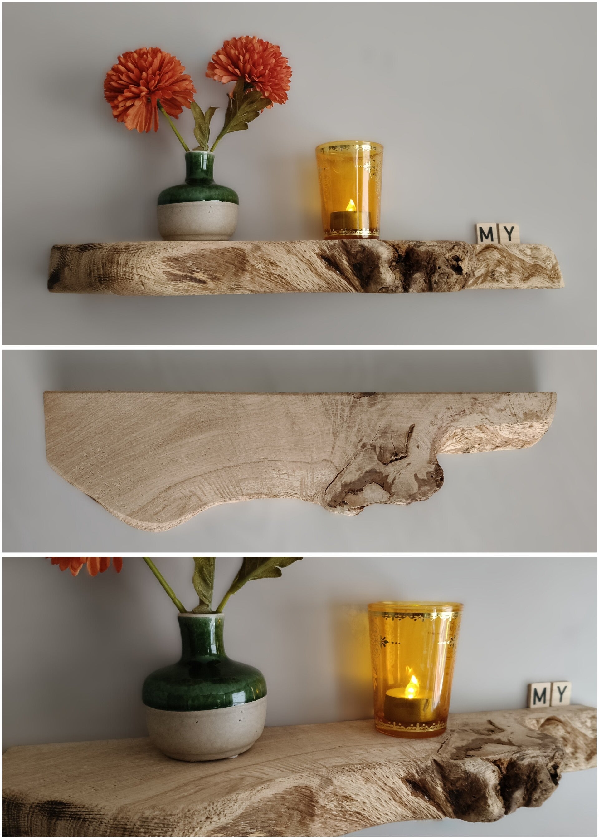 De plank is aan de achterzijde voorzien van sleutelgaten, waardoor je deze eenvoudig zwevend kunt ophangen met schroeven. Geschikt voor lichte belasting/decoratie.