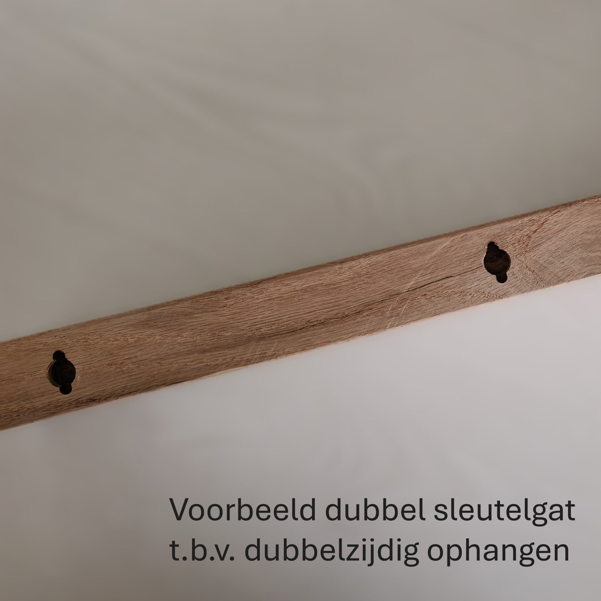 De bij de wandplank geleverde pennen en/of soort sleutelgat kan wat afwijken van de voorbeelden en kan afhankelijk zijn van wat er voor de betreffende soort/maat plank nodig is.